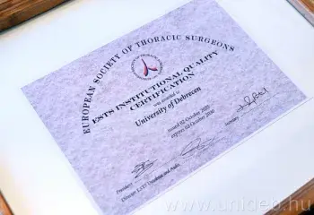 Thoracic Surgery Department (TSD) of the Surgical Clinic of the University of Debrecen has once again received accreditation from the European Society of Thoracic Surgeons (ESTS), confirming that this institution provides European-level care to patients. TSD first earned this prestigious international certification back in 2012, becoming the first such institution in Eastern Europe to do so. Since then, the certificate has had to be reearned every five years based on strict criteria.