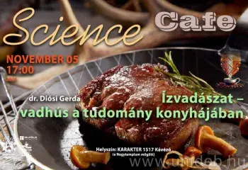 Folytatódik a Debreceni Egyetem tudományos ismeretterjesztő sorozata, a Science Cafe az intézmény Tudományos Igazgatóságának szervezésében. November 5-én, szerdán 17 órai kezdettel Ízvadászat – vadhús a tudomány konyhájában címmel Diósi Gerda, a Mezőgazdaság-, Élelmiszertudományi és Környezetgazdálkodási Kar Élelmiszertechnológiai Intézet adjunktusa tart előadást a Karakter 1517 Könyvesbolt és Kávézóban.