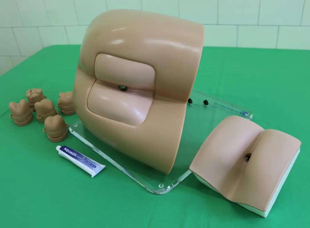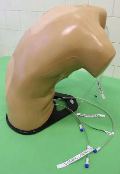 Ultrahang vezérelt lumbálpunkció és epidurális beavatkozás gyakorlására alkalmas, valósághű modell. Tájékozódási pontok segítségével - UH vezérelten - végezhető a szúrás. A betegbiztonságot fokozza, a hallgató manualitását és az ultrahang használatában való jártasságát fejleszti.